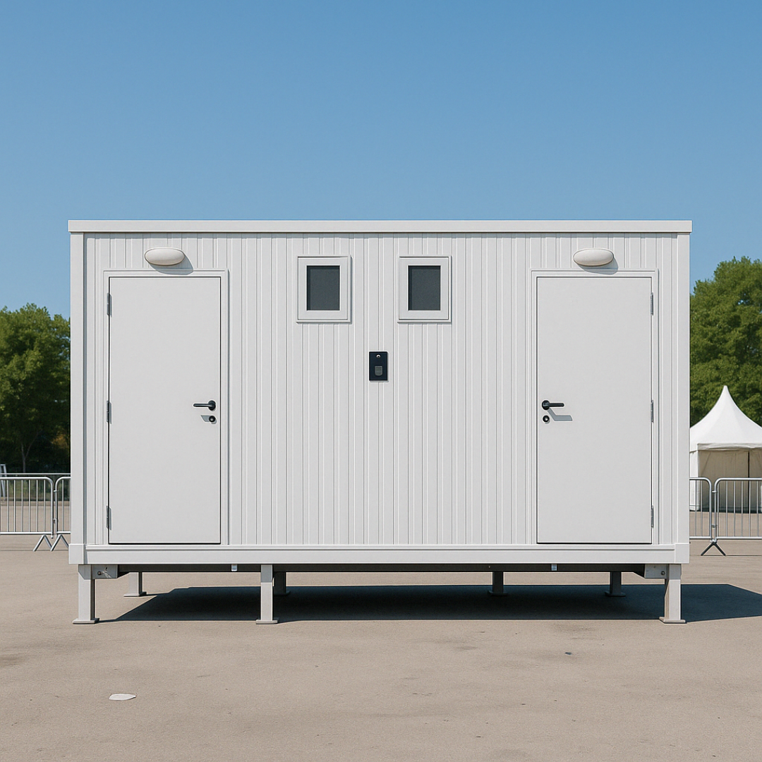 Self-contained, plumbing-free sanitation units for events, construction sites, and temporary outdoor settings.